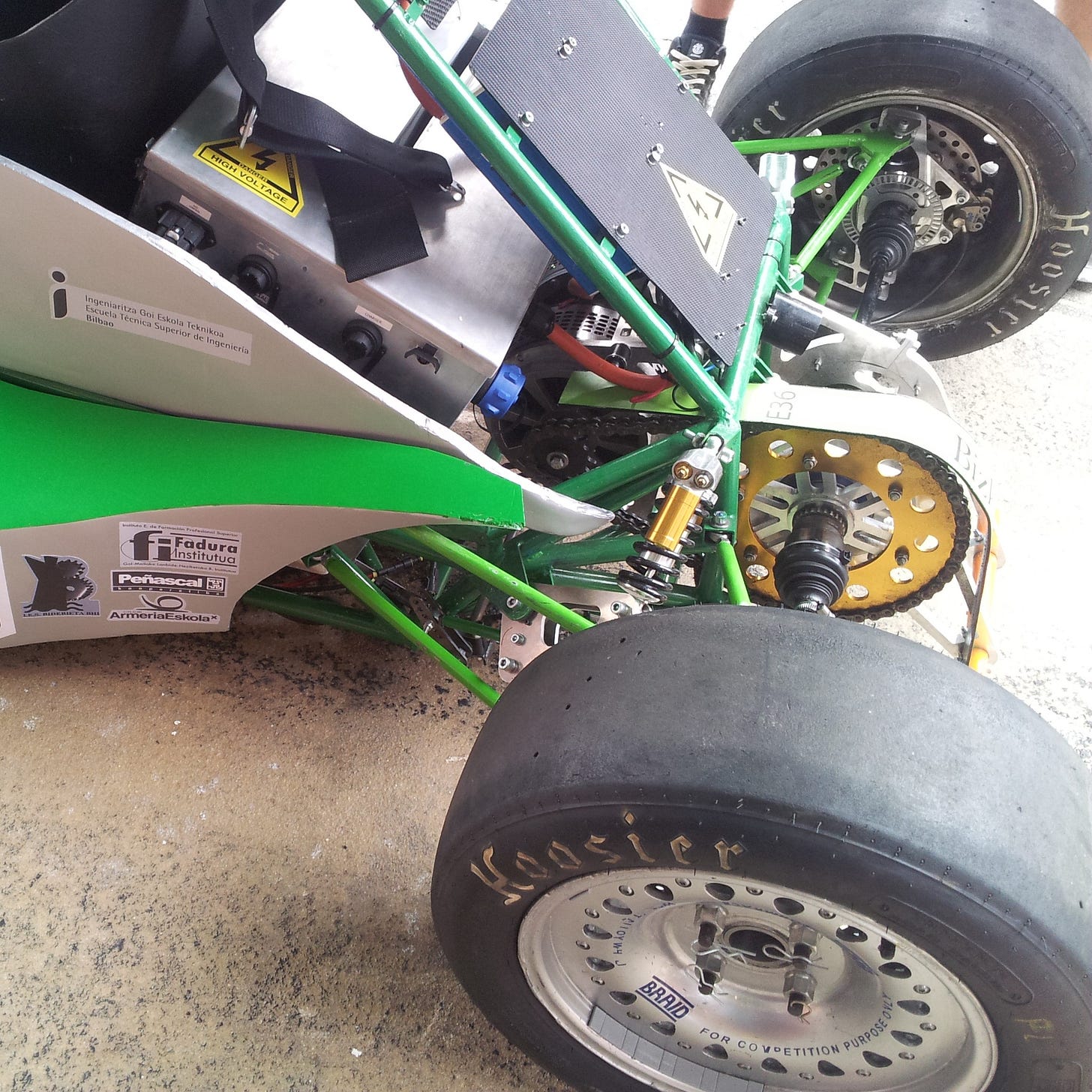 Como equipo, llevábamos a cuestas un saco de aprendizajes sobre todo el proceso de construir y competir con un monoplaza de combustión interna (de gasolina vaya). Pero, este año, el corazón del coche iba a cambiar completamente. Pasábamos de tanque de gasolina a baterías, de motor de combustión a eléctrico… Y con ello, no solo cambiaban el diseño y fabricación, también la normativa, las pruebas que íbamos a tener que pasar para poder entrar en la competición y hasta la manera en la que tendríamos que organizarnos como equipo para conseguirlo.